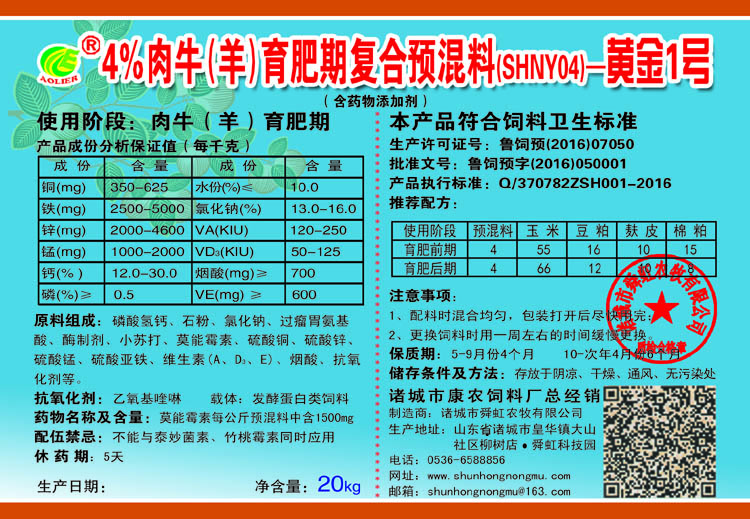 康農(nóng) 4%肉牛(羊)育肥期復(fù)合預(yù)混料-黃金1號(hào)