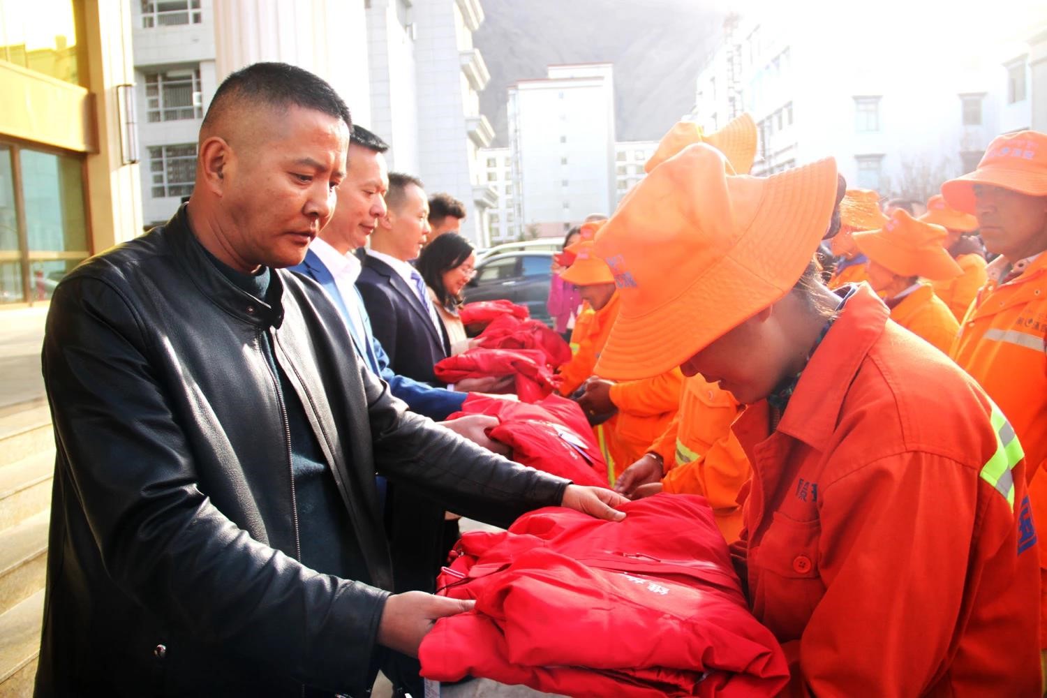 乃東區(qū)副區(qū)長(zhǎng)格桑羅布、乃東區(qū)住房和城鄉(xiāng)建設(shè)局局長(zhǎng)張俊、國(guó)策公司負(fù)責(zé)人次仁旺慶應(yīng)邀參加活動(dòng),并共同為環(huán)衛(wèi)工人發(fā)放了保暖御寒的嶄新環(huán)衛(wèi)工裝。