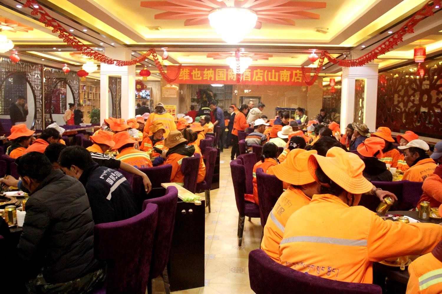 慰問(wèn)活動(dòng)結(jié)束后,主辦方邀請(qǐng)所有環(huán)衛(wèi)工人同吃火鍋宴。秘制火鍋湯料,冒著熱氣兒,散著香味兒,開(kāi)胃小菜,各種醬料,時(shí)鮮蔬菜,魚(yú)肉等豐盛的菜品讓“城市美容師”們吃的既暖胃,又暖心。