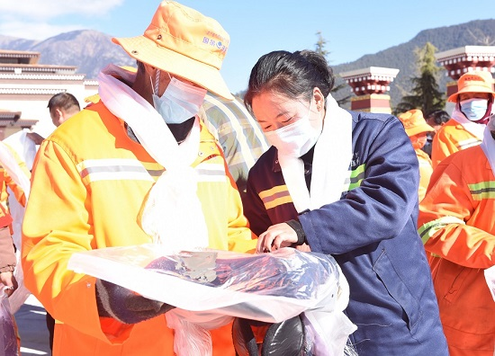 1月27日,日喀則市總工會(huì)在市總工會(huì)大院內(nèi)開展了2022年 “三大節(jié)日”送溫暖集中慰問活動(dòng) 。日喀則市城市管理和綜合執(zhí)法局副局長普布出席慰問活動(dòng)并向國策一線環(huán)衛(wèi)員工獻(xiàn)上了潔白的哈達(dá)和慰問品。