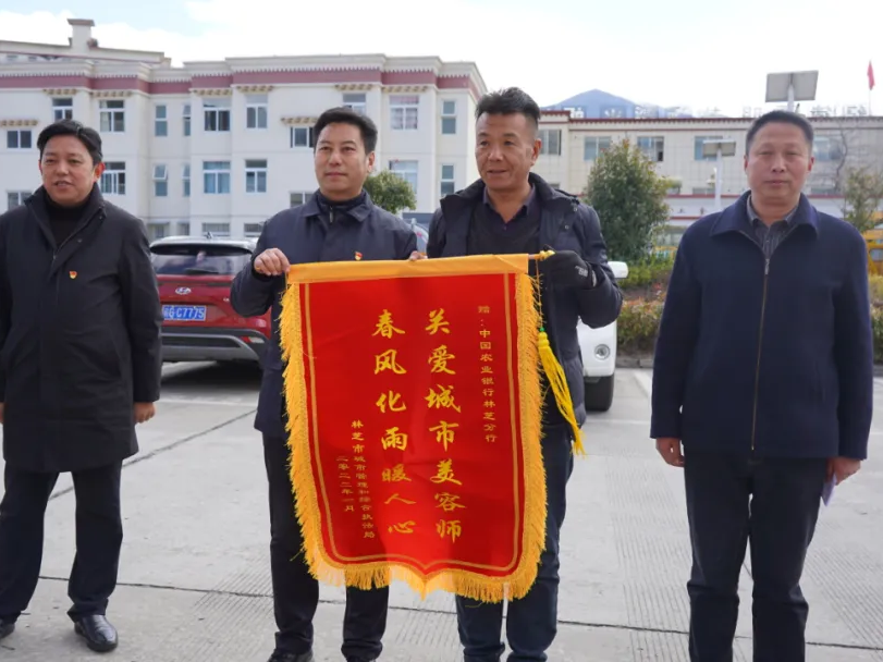 1月14日,中國農(nóng)業(yè)銀行林芝分行在林芝市城市管理和綜合執(zhí)法局開展一線工人慰問活動(dòng)。中國農(nóng)業(yè)銀行林芝分行黨委書記、行長扎西達(dá)娃,黨委委員、副行長格桑次仁,中國農(nóng)業(yè)銀行林芝分行辦公室、機(jī)構(gòu)業(yè)務(wù)部相關(guān)負(fù)責(zé)人,林芝市城市管理和綜合執(zhí)法局黨組書記、副局長孟存軍,黨組成員、二級(jí)調(diào)研員周旭東,市城市管理和綜合執(zhí)法局辦公室、環(huán)衛(wèi)管理中心相關(guān)負(fù)責(zé)同志參加慰問活動(dòng)。