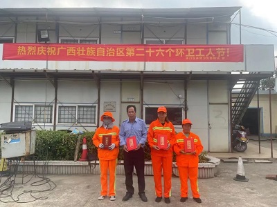 10月26日是廣西壯族自治區(qū)第26屆環(huán)衛(wèi)工人節(jié),國策環(huán)保防城港分公司唐輝、胡錫英、黃愛英、禤立艷、廖艷萍五名員工榮獲防城港城市管理監(jiān)督局“2022年環(huán)衛(wèi)先進工作者”。防城港市委副書記、市長黃江親自為他們頒發(fā)榮譽證書,并對他們?yōu)榉莱歉凼兴龀龅呢暙I給予了肯定及鼓勵。